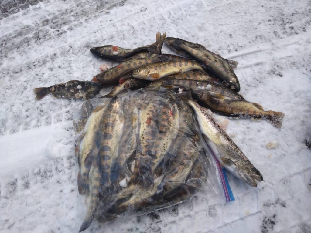 ・多治見市の近藤朝男さんが美並町高砂地内の平僧橋下流付近で20~23㎝のアマゴを29匹釣った。10時までの釣果。サオ:7m、イト:0.02号、ハリ:5号、エサ:ブドウムシ、キンパク。