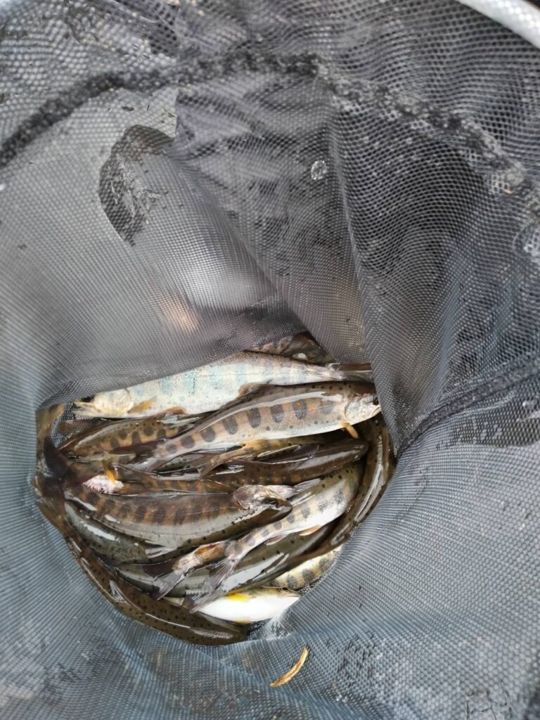 ・瑞穂市の寺尾さんが明宝気良地内の水上橋から中央橋の間で16~21㎝のアマゴを20匹釣った。12時までの釣果。サオ:5.3m、イト:0.2号、ハリ:4号、エサ:キンパク。